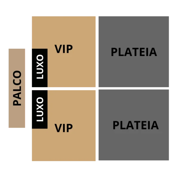 Check-in exclusivo; Estacionamento exclusivo. Assentos nas primeiras fileiras do palco, com serviço volante.